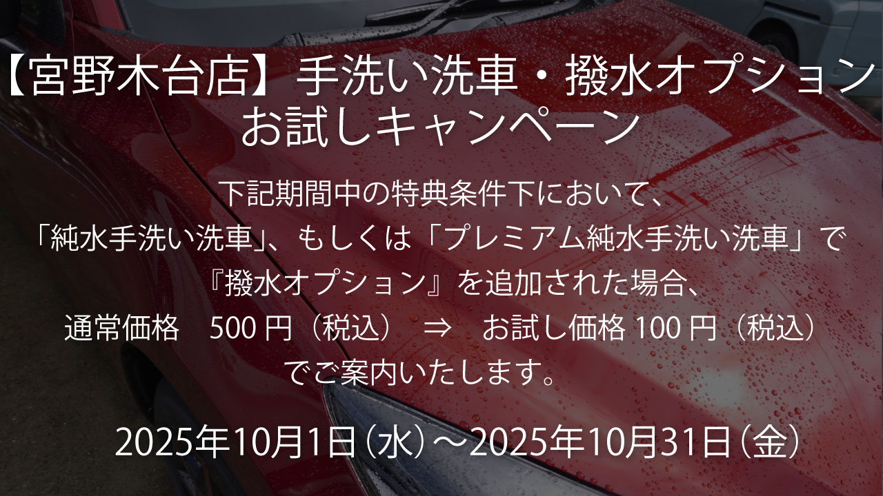 手洗い洗車・撥水オプションお試しキャンペーン