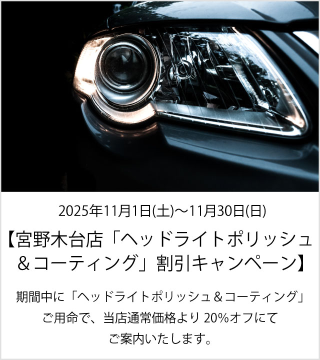 期間中の特典条件下において、「ヘッドライトポリッシュ&コーティング」をご用命で20%offの特別価格にてご案内します。